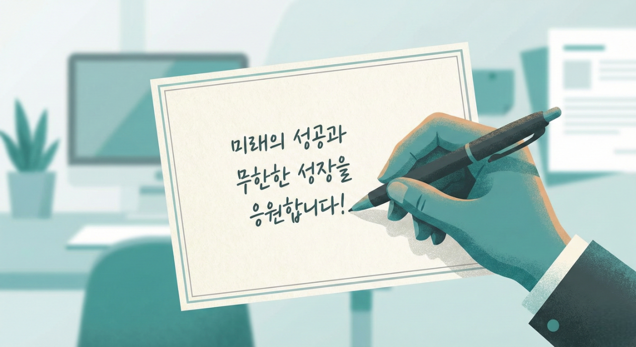 2. 미래 응원: 과거의 노고와 함께 앞으로의 성장을 기대하고 응원하는 메시지를 포함하세요.
